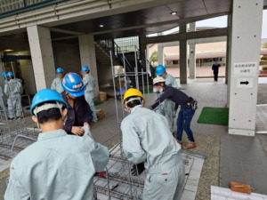 関西鉄筋工業協同組合主催の【出前講座】が兵庫県立篠山産業高等学校で開催されました。これから社会に羽ばたく高校生の皆さんに鉄筋工の仕事を知ってもらい、体験してもらいました。
